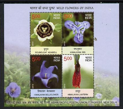 India 2013 Postal Union Congress - Wild Flowers perf sheetlet #2 containing 4 values unmounted mint