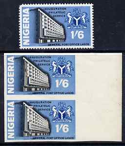Nigeria 1969 Inauguration of Philatelic Service 1s6d imperf marginal pair with gum but some slight soiling plus perf normal SG 216