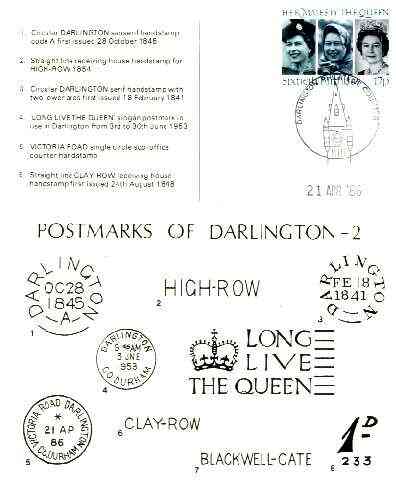 Postcard of Postal Markings of Darlington used with illustrated Darlington Philatelic Counter cancel (published by Darlington PS)