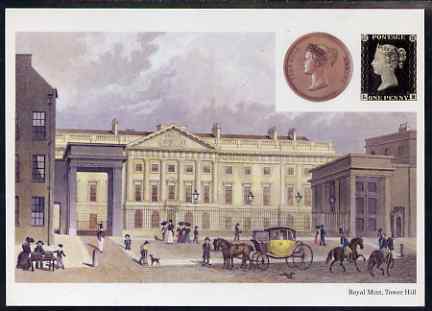 Postcard - Royal Mint on Tower Hill, Medal & 1d black PPC produced by National Postal Museum unused and fine