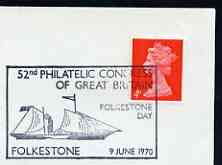 Postmark - Great Britain 1970 cover bearing special cancellation for 52nd Philatelic Congress of Great Britain, Folkestone (showing Paddle Steamer)