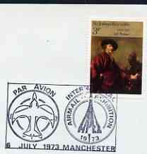 Postmark - Great Britain 1973 cover bearing illustrated cancellation for International Airmail Exhibition, Manchester (6 July showing stylised aircraft)