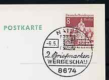 Postmark - West Berlin 1967 postcard with special cancellation for 2nd Stamp Publicity Show illustrated with Bavarian 1k stamp