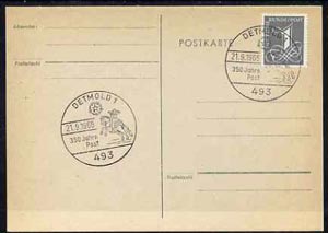Postmark - West Germany 1966 postcard with special cancellation for 350 Years of Post in Detmold illustrated with Mounted Postal Courier