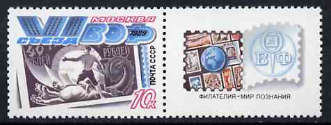 Russia 1989 Philatelic Society Congress se-tenant with label unmounted mint, SG 6028, Mi 5981