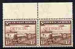 South West Africa 1938 OFFICIAL overprint on Mail Train 1.5d horiz bi-lingual pair unmounted mint SGO17