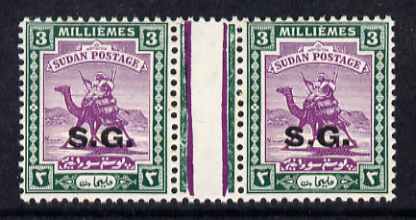 Sudan 1936-46 Official 3m Camel Postman overprinted SG inter-paneau gutter pair unmounted mint, SG O34