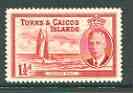 Turks & Caicos Islands 1950 KG6 Caicos Mail (Yacht) 1.5d deep carmine unmounted mint, SG 223*
