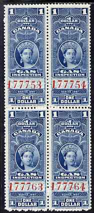 Canada 1897 Revenue QV $1 Gas Inspection block of 4 unmounted mint