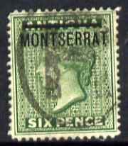 Montserrat 1876-83 QV opt on Antigua 6d green CC with circular cancel SG2