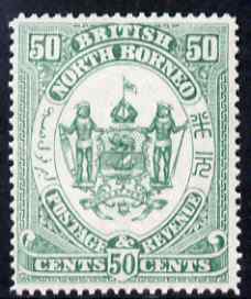 North Borneo 1888 Arms 50c perforated colour trial in green fresh with gum, as SG 46