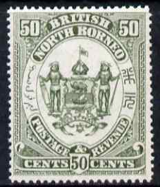 North Borneo 1888 Arms 50c perforated colour trial in olive fresh with gum, as SG 46