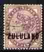 Zululand 1888-93 QV opt on Great Britain 1d deep violet cds used SG2