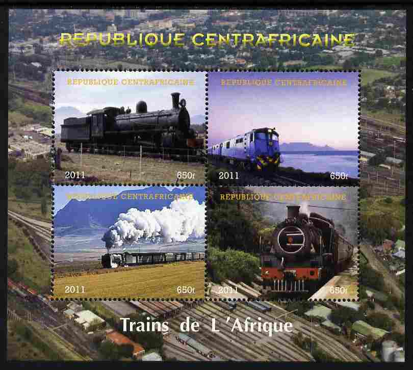Central African Republic 2011 Railways - Trains of Africa perf sheetlet containing 4 values unmounted mint. Note this item is privately produced and is offered purely on its thematic appeal
