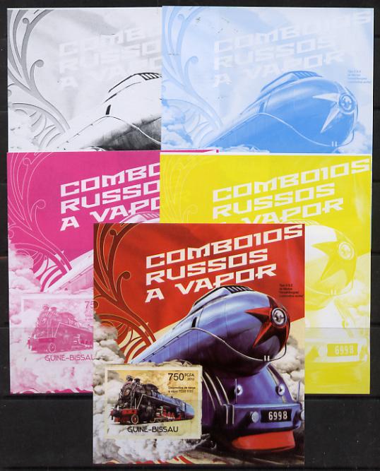 Guinea - Bissau 2012 Russian Steam Trains - FD20 deluxe sheet - the set of 5 imperf progressive proofs comprising the 4 individual colours plus all 4-colour composite, unmounted mint