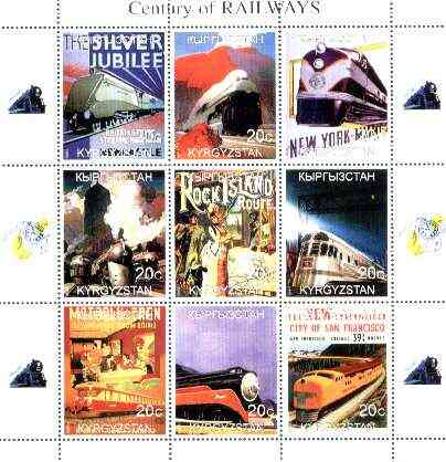 Kyrgyzstan 1999 Century of Railways perf sheetlet containing set of 9 unmounted mint