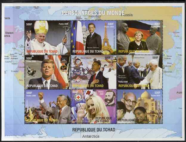 Chad 2009 World Personalities perf sheetlet containing 9 values unmounted mint. Note this item is privately produced and is offered purely on its thematic appeal.
