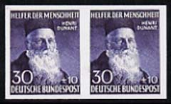 Germany - West 1952 Humanitarian relief Fund 30pf Henri Dunant,'Maryland' imperf pair 'unused' forgery, as SG 1085 - the word Forgery is either handstamped or printed on the back and comes on a presentation card with descriptive notes