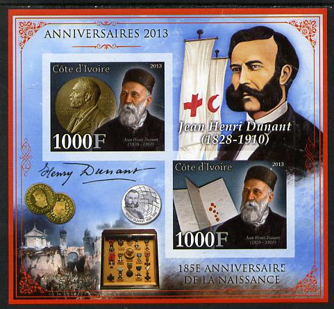 Ivory Coast 2013 Anniversaries - 185th Birth Anniversary of Henri Dunant imperf sheetlet containing 2 values unmounted mint
