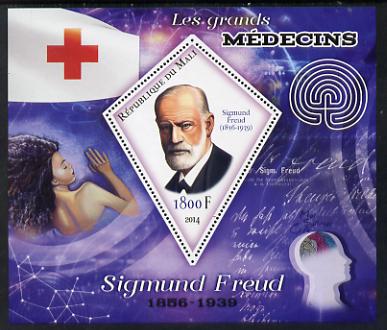 Mali 2014 Great Men of Medicine - Sigmund Freud perf s/sheet containing one diamond shaped value unmounted mint