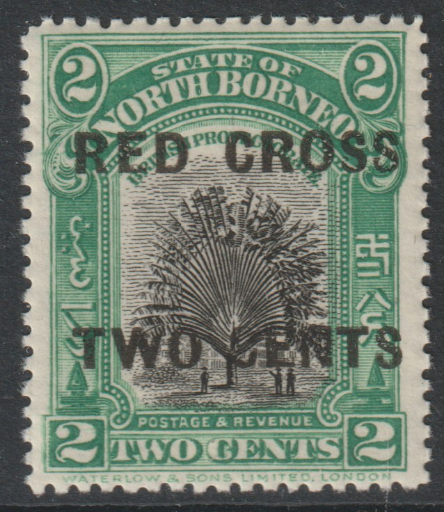 North Borne 1918 Red Cross opt on 2c Travellers Tree,+ 2c unmounted mint SG 215
