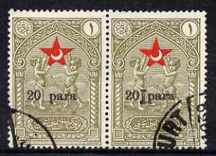 Turkey 1932 Postal Tax 20pa on 1k Red Crescent (Child Welfare) horiz pair with spacer printed on one stamp, fine used as SG T1216