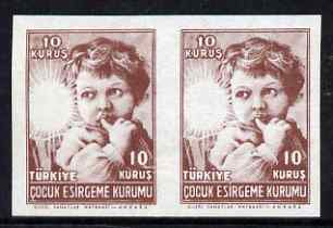 Turkey 1945 Postal Tax 10k horizontal imperf pair with red (star) omitted, unmounted mint but minor wrinkles