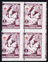 Turkey 1945 Postal Tax 1k Red Crescent (Nurse & Baby) block of 4 with vert perfs misplaced 3mm mounted mint, as SG T1354