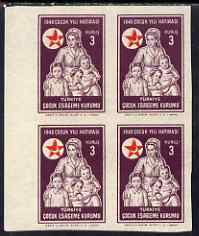 Turkey 1949 Postal Tax Child Welfare 3k Nurse & Children imperf block of 4 unmounted mint