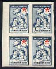 Turkey 1949 Postal Tax - Nurse & Children 1k block of 4 IMPERF unmounted mint, light wrinkles