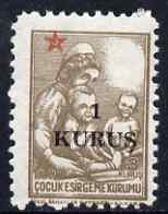 Turkey 1952 Postal Tax 1k on 3k Red Crescent with red misplaced 10mm fine mounted mint SG T1494