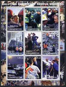 Turkmenistan 2001 Saluting Emergency Rescue Workers perf sheetlet containing set of 9 values complete unmounted mint