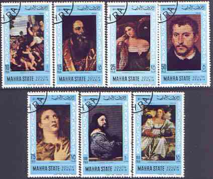 Aden - Mahra 1968 Paintings by Titian perf set of 7 cto used, Mi 83-89A
