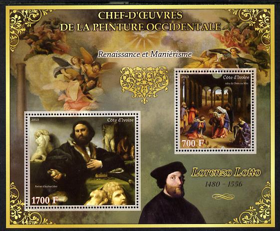 Ivory Coast 2013 Art Masterpieces from the Western World - Renaissance & Mannerism - Lorenzo Lotto perf sheetlet containing 2 values unmounted mint