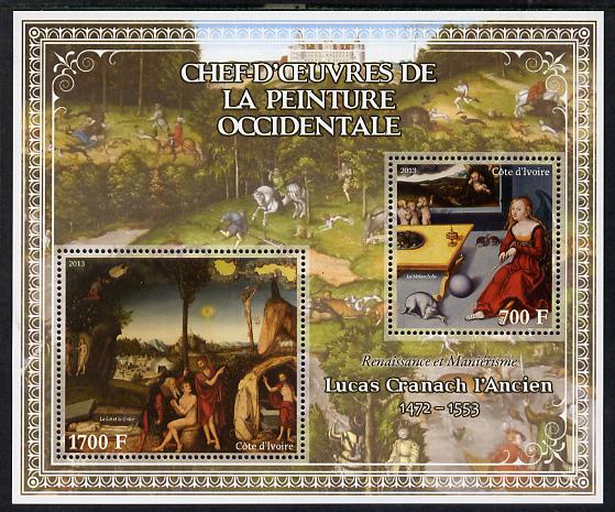 Ivory Coast 2013 Art Masterpieces from the Western World - Renaissance & Mannerism - Lucas Cranach (Cranach the Elder) perf sheetlet containing 2 values unmounted mint