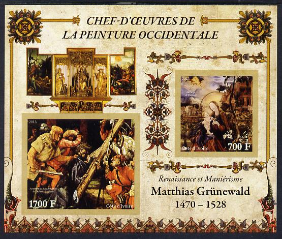 Ivory Coast 2013 Art Masterpieces from the Western World - Renaissance & Mannerism - Matthias Grunewald imperf sheetlet containing 2 values unmounted mint