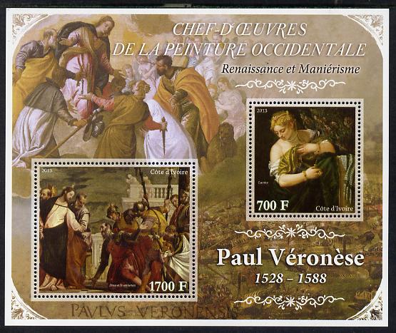 Ivory Coast 2013 Art Masterpieces from the Western World - Renaissance & Mannerism - Paul Veronese perf sheetlet containing 2 values unmounted mint
