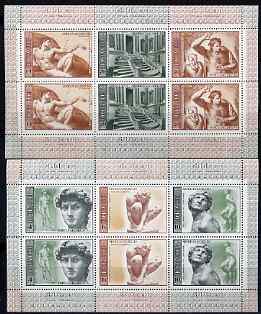 Russia 1975 Birth Anniversary of Michelangelo set of 2 sheetlets (each containing 2 se-tenant strips of 3) unmounted mint as SG 4368-73, Mi 4329-34