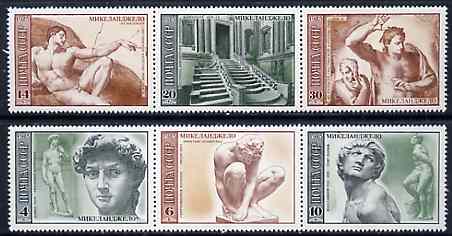 Russia 1975 Birth Anniversary of Michelangelo set of 6 (2 se-tenant strips of 3) unmounted mint, SG 4368-73, Mi 4329-34