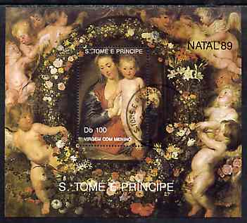 St Thomas & Prince Islands 1989 Christmas 100Db m/sheet (Painting by Rubens) very fine cto used Mi BL 222