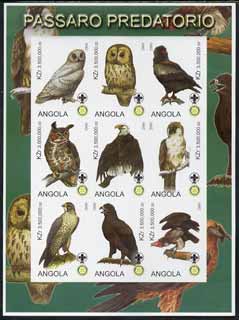 Angola 2000 Birds of Prey imperf sheetlet containing set of 9 values each with Rotary & Scouts Logos, unmounted mint