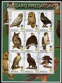 Angola 2000 Birds of Prey perf sheetlet containing set of 9 values each with Rotary & Scouts Logos, fine cto used