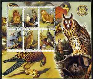 Benin 2002 Birds of Prey #2 perf m/sheet containing 6 values. each with Rotary Logo cto used