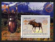 Benin 2002 Deer perf s/sheet containing single value with Scouts & Guides Logos plus Rotary Logo & Insect (Beetle) in outer margin, unmounted mint