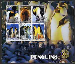 Benin 2002 Penguins perf m/sheet containing 6 values. each with Rotary Logo unmounted mint