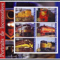 Benin 2002 Portraits of Locomotives imperf sheetlet containing set of 6 values each with Rotary Logo unmounted mint