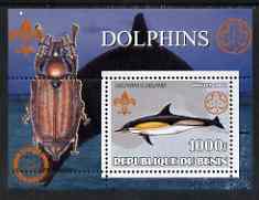 Benin 2002 Whales & Dolphins perf s/sheet containing single value with Scouts & Guides Logos plus Rotary Logo & Insect (Beetle) in outer margin, unmounted mint