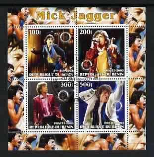 Benin 2003 Mick Jagger (Rolling Stones) perf sheetlet containing set of 4 values each with Rotary International Logo cto used