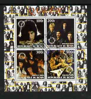 Benin 2003 Queen (pop group) #1 perf sheetlet containing set of 4 values each with Rotary International Logo cto used