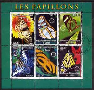 Congo 2003 Butterflies perf sheetlet #01 (green border) containing 6 values each with Rotary Logo, fine cto used